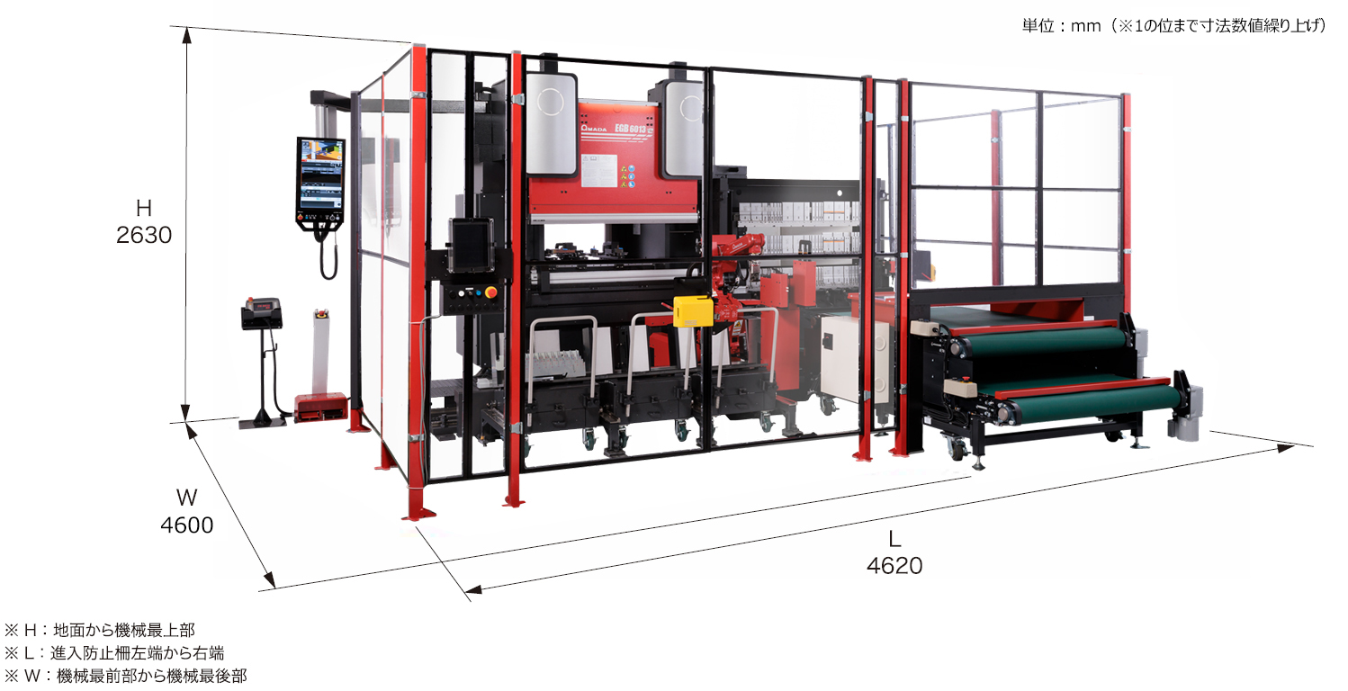 新たな機械を導入しました!2026.1.14お知らせ AMADA社の電動サーボベンディング自動化システムEGB 6013 ARc eが導入されました。 自動化システムが付加されておりますので、24時間自動運転が可能です。